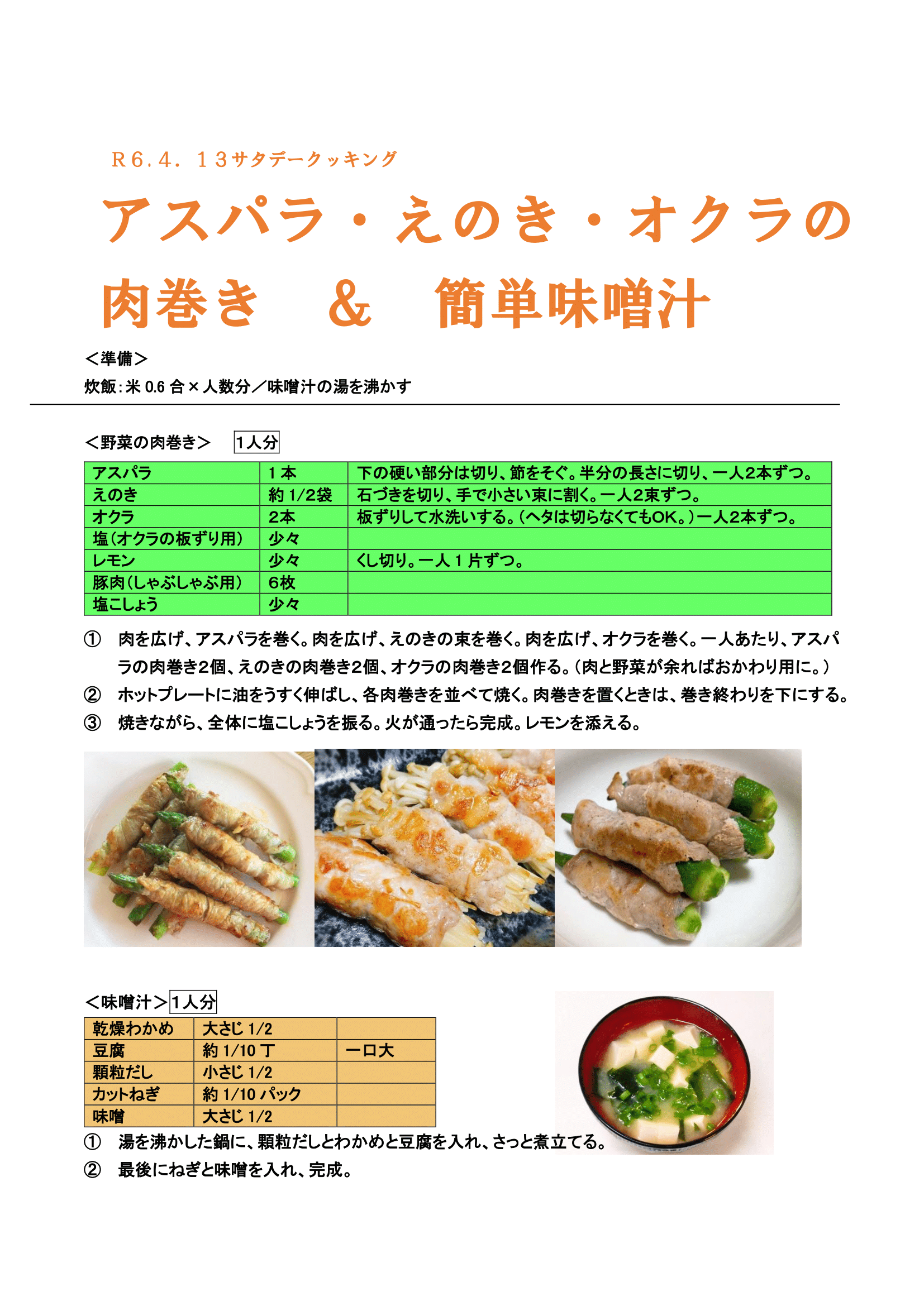 レシピ紹介『サタデー・クッキング:アスパラの肉巻き』