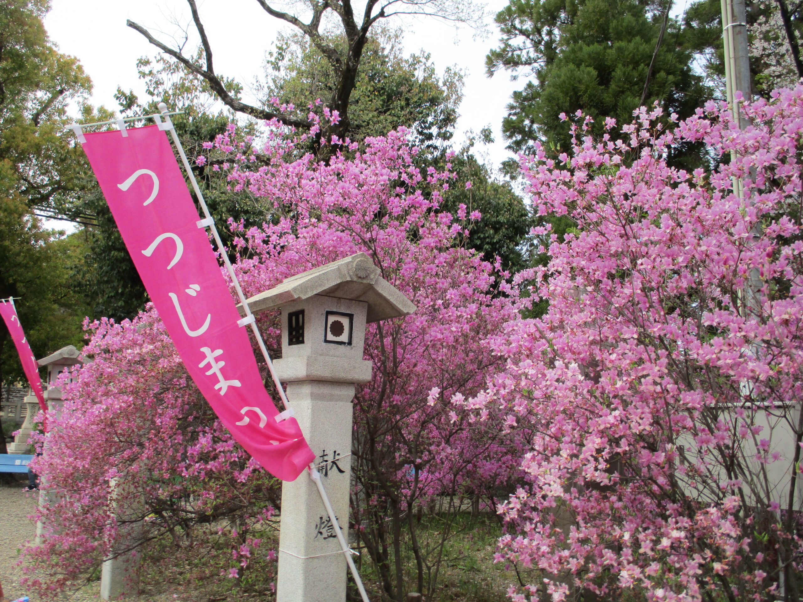 「とも」から歩いて15分廣田神社。県の天然記念物「コバノミツバツツジ」が群生していることで有名です🎵 今日は満開、当たりの日でした!