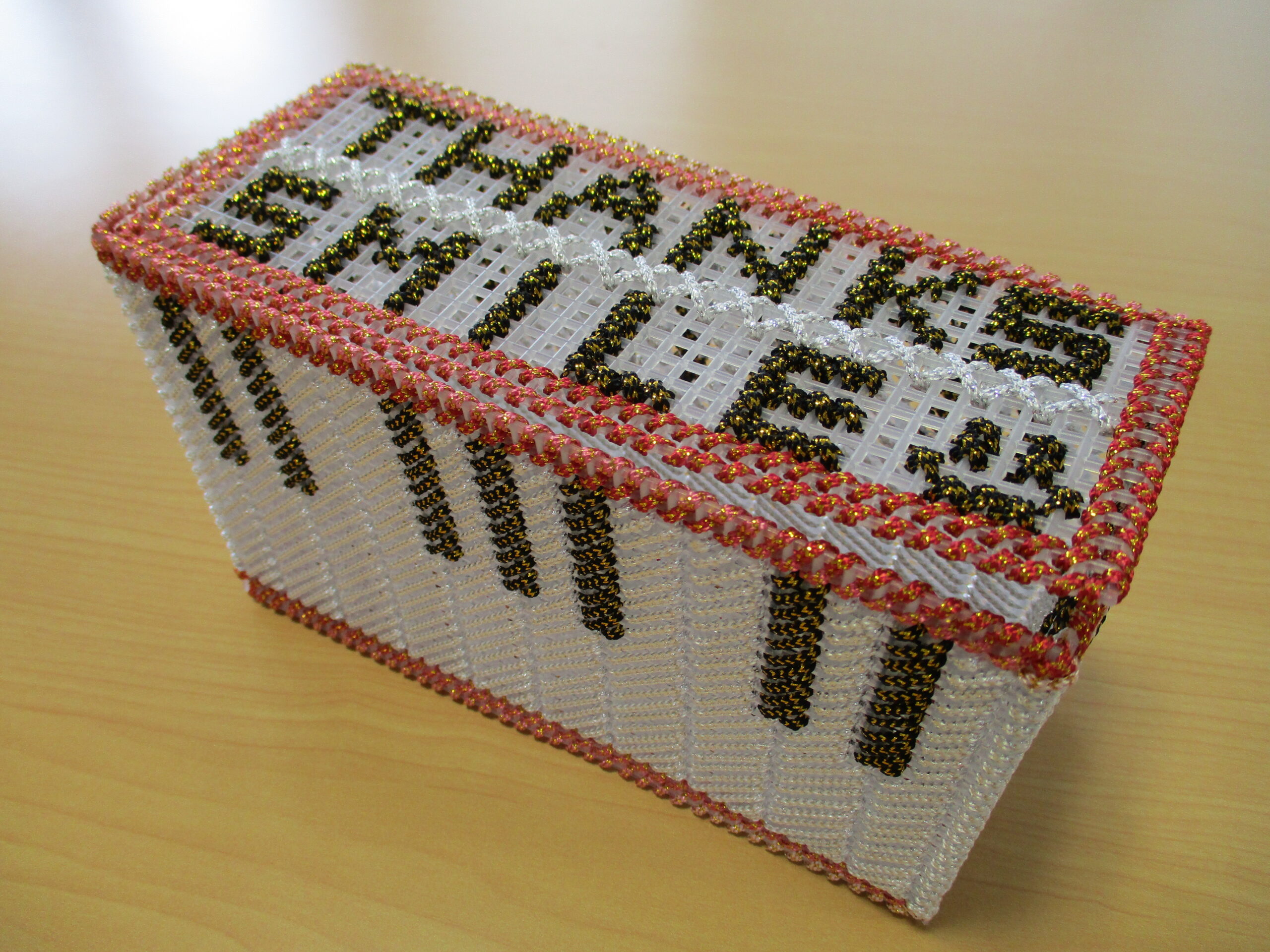 「デイケアとも」では、プログラムや個人活動で、色々な「ものづくり」ができます。前回はプログラムで作られた2作品をご紹介しましたが、今回は個人活動で取り組まれた「ネット手芸」の小物入れです。ピアノの鍵盤をモチーフにした素敵な作品に仕上げておられます。