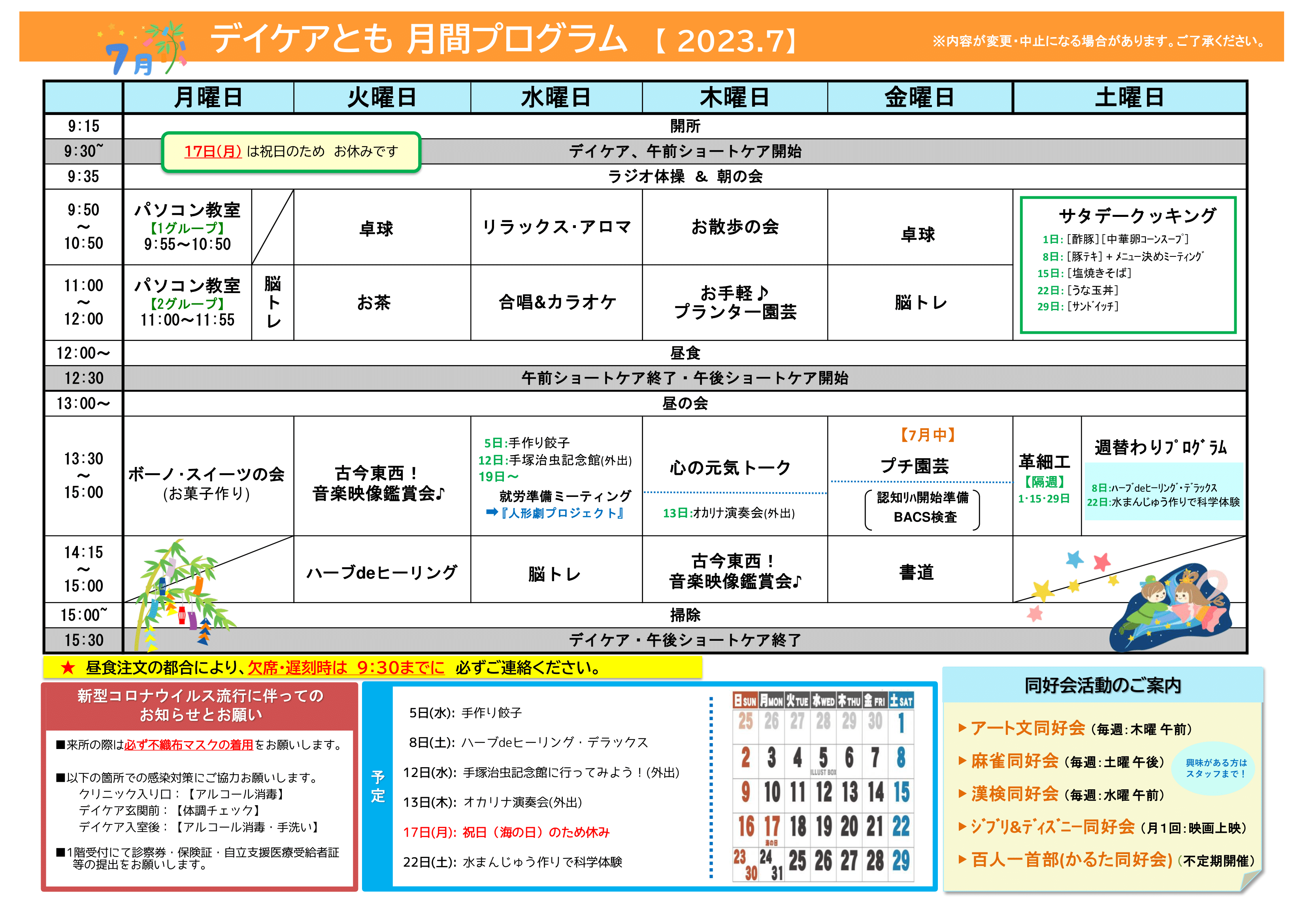 7月の月間プログラム表ができました! 来月もいろいろやります♪ お楽しみに~