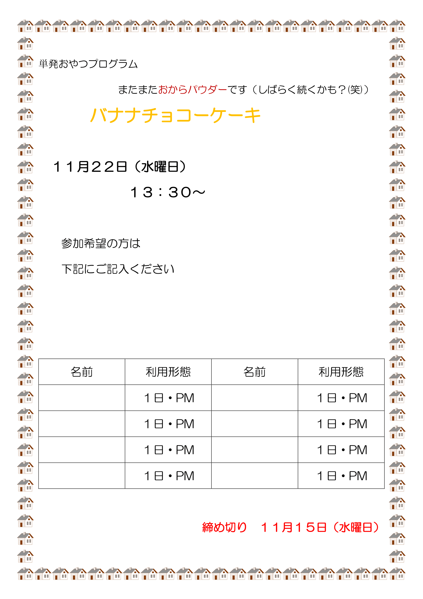 11月22日(水)『おからパウダーでバナナチョコケーキ』