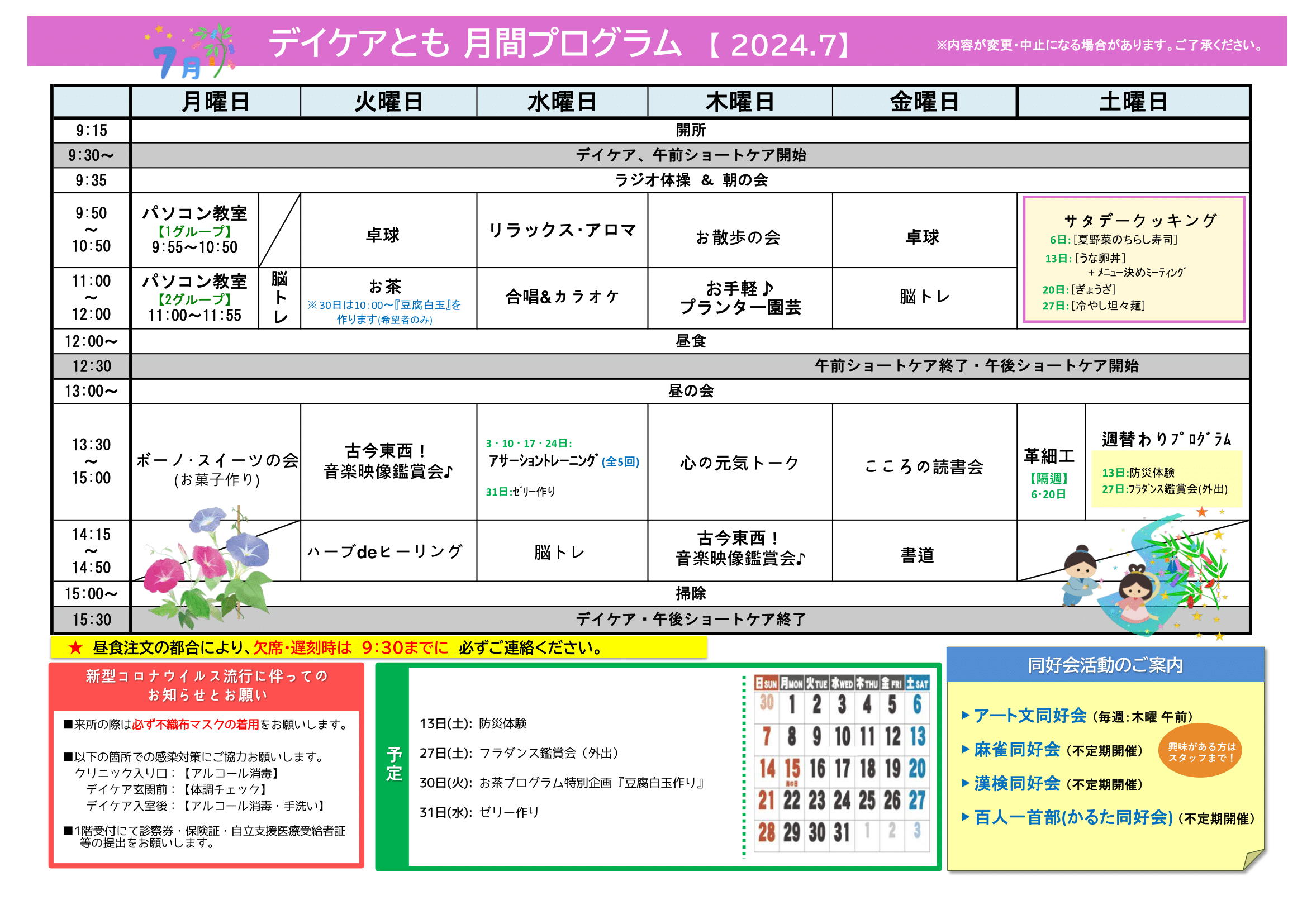 7月の月間プログラム表ができました! 来月もいろいろやります♪ お楽しみに~