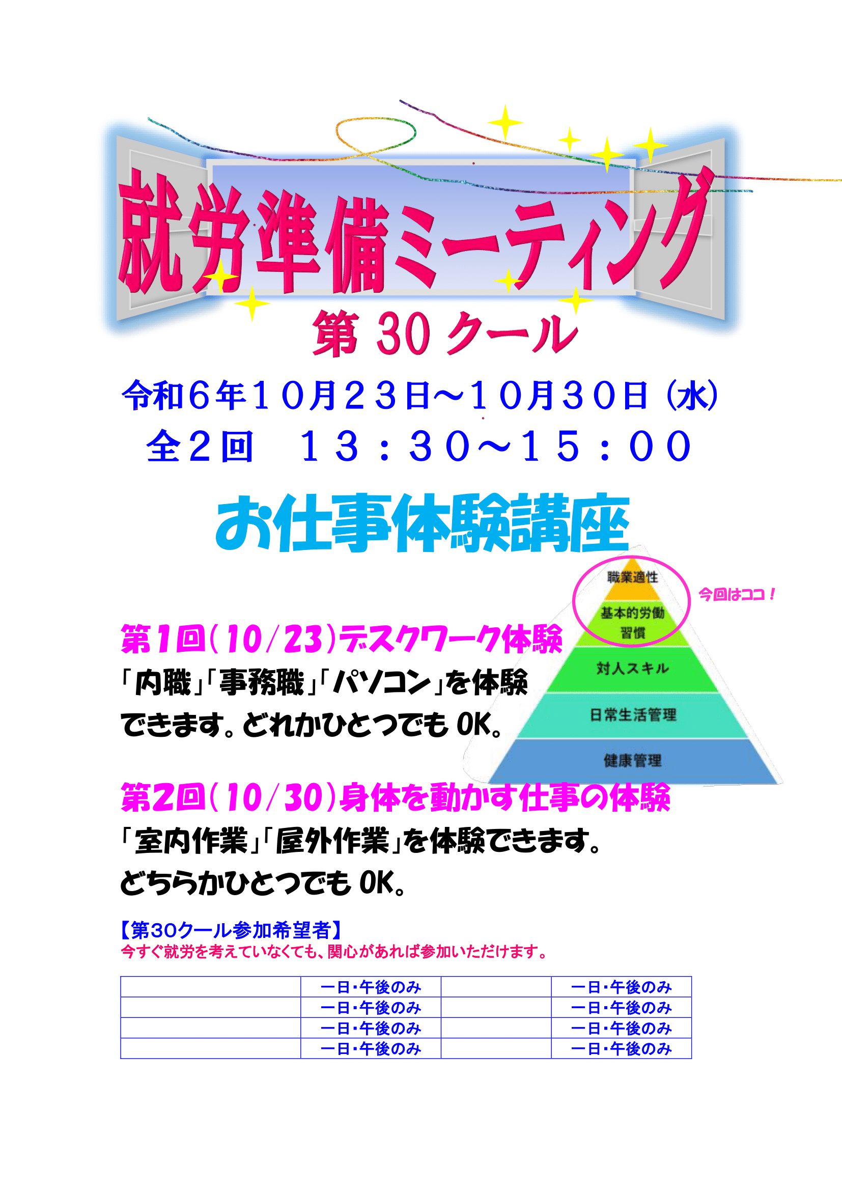 10/23・30【就労準備ミーティング30クール:お仕事体験講座】