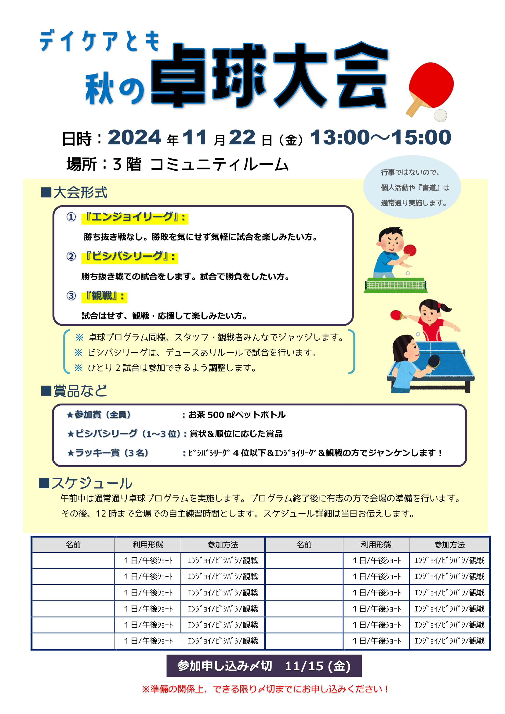 11月22日(金)「秋の卓球大会」