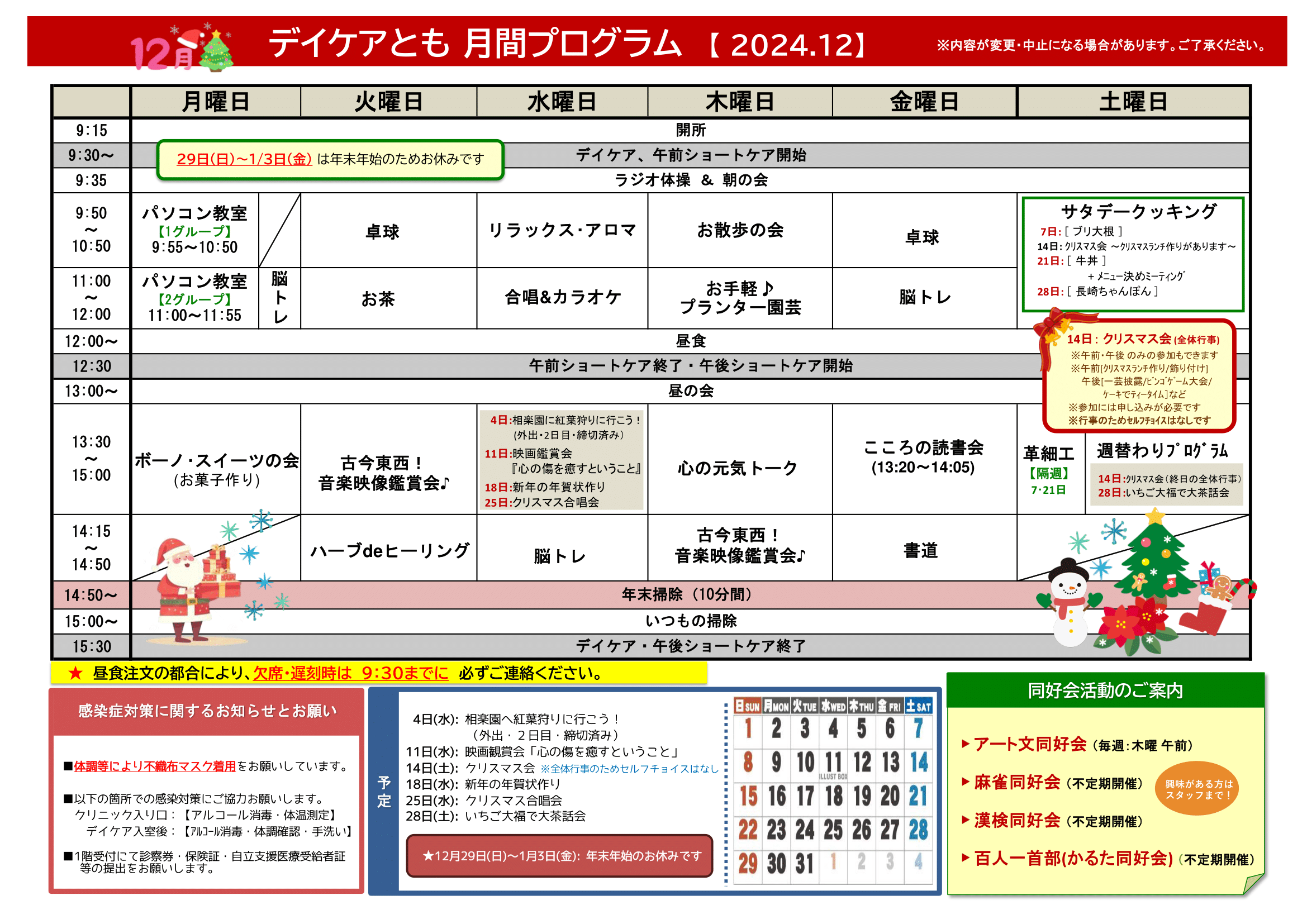 12月の月間プログラム表ができました! 来月もいろいろやります♪ お楽しみに~