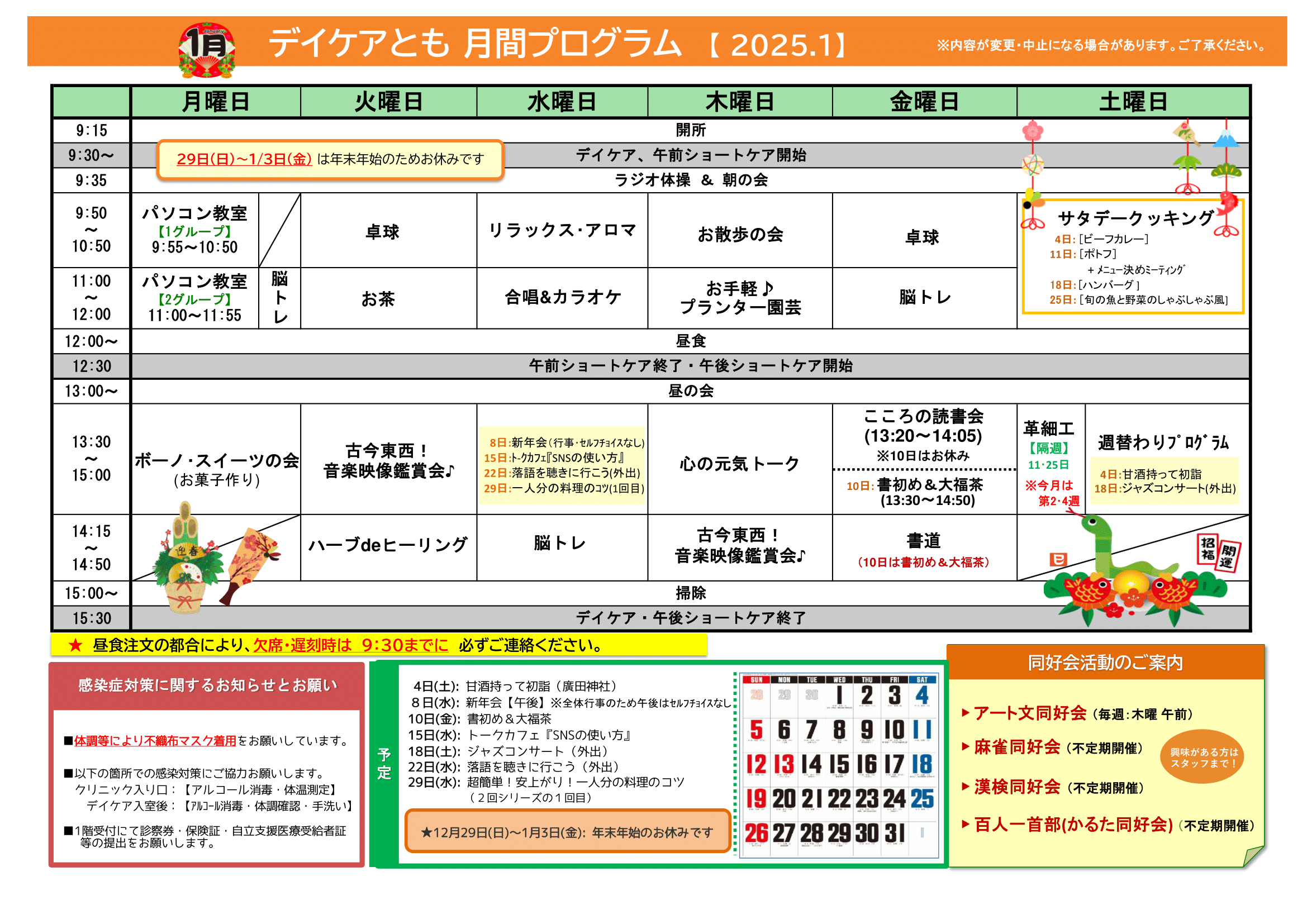 1月の月間プログラム表ができました! 来月もいろいろやります♪ お楽しみに~