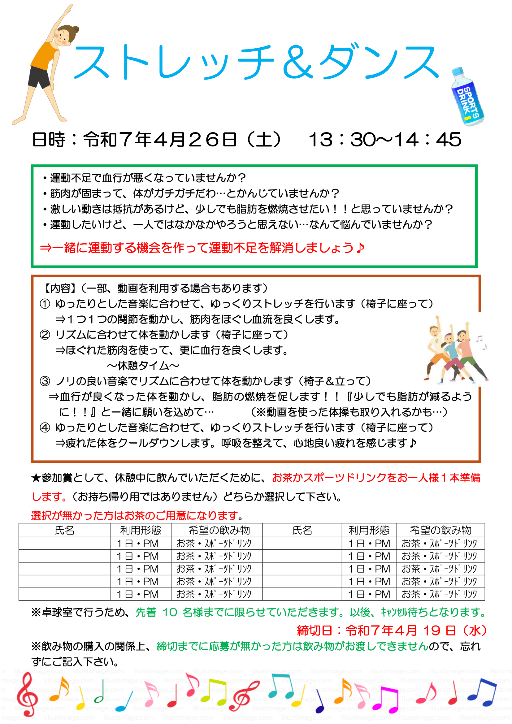 4月26日(土)「ストレッチ&ダンス」