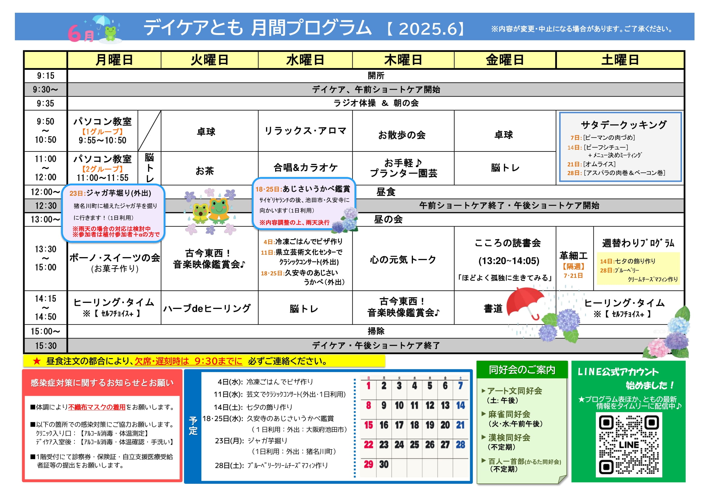 7月の月間プログラム表ができました! 来月もいろいろやります♪ お楽しみに~