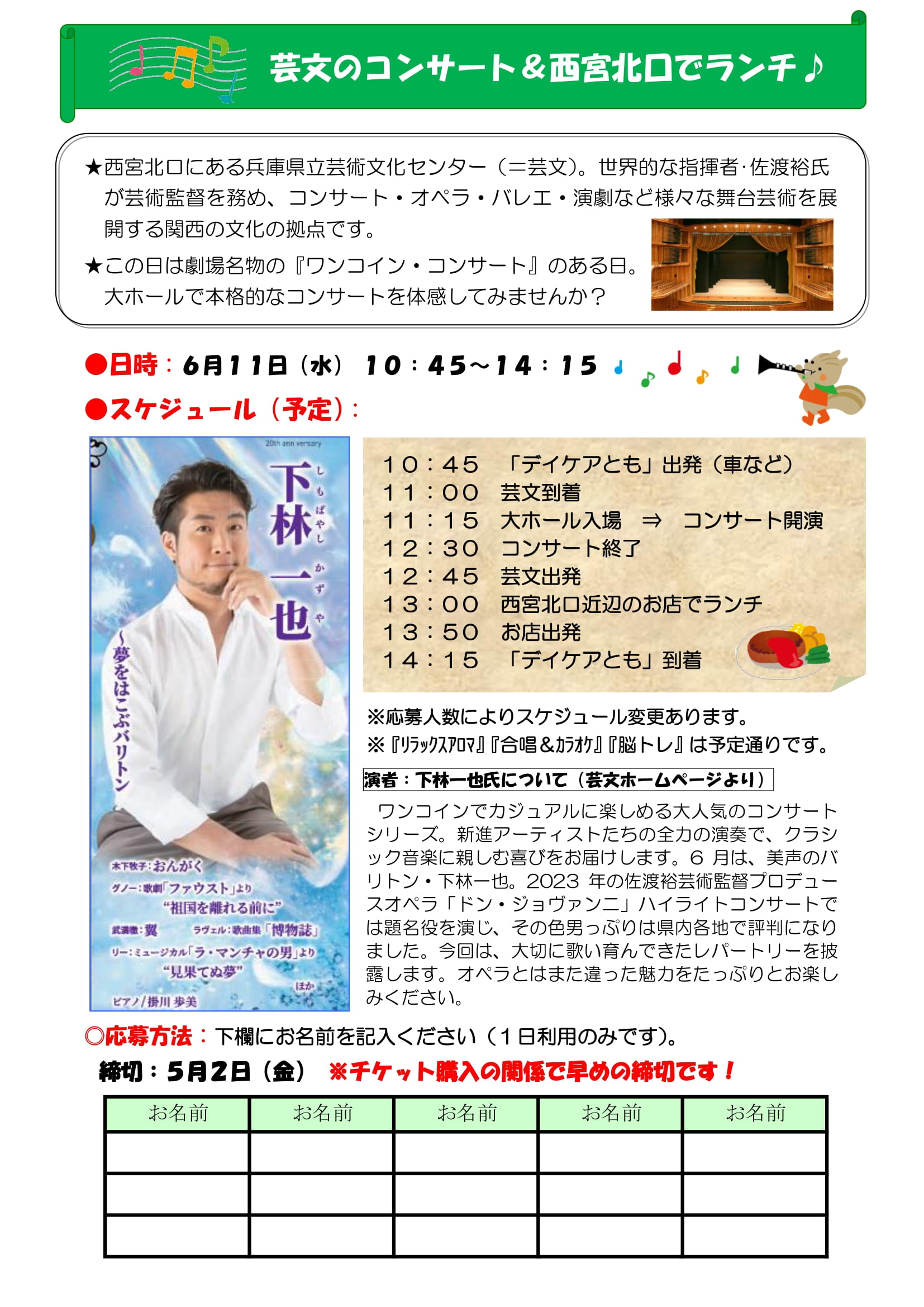 - 6月11日(水)「芸文のコンサート&ランチ」