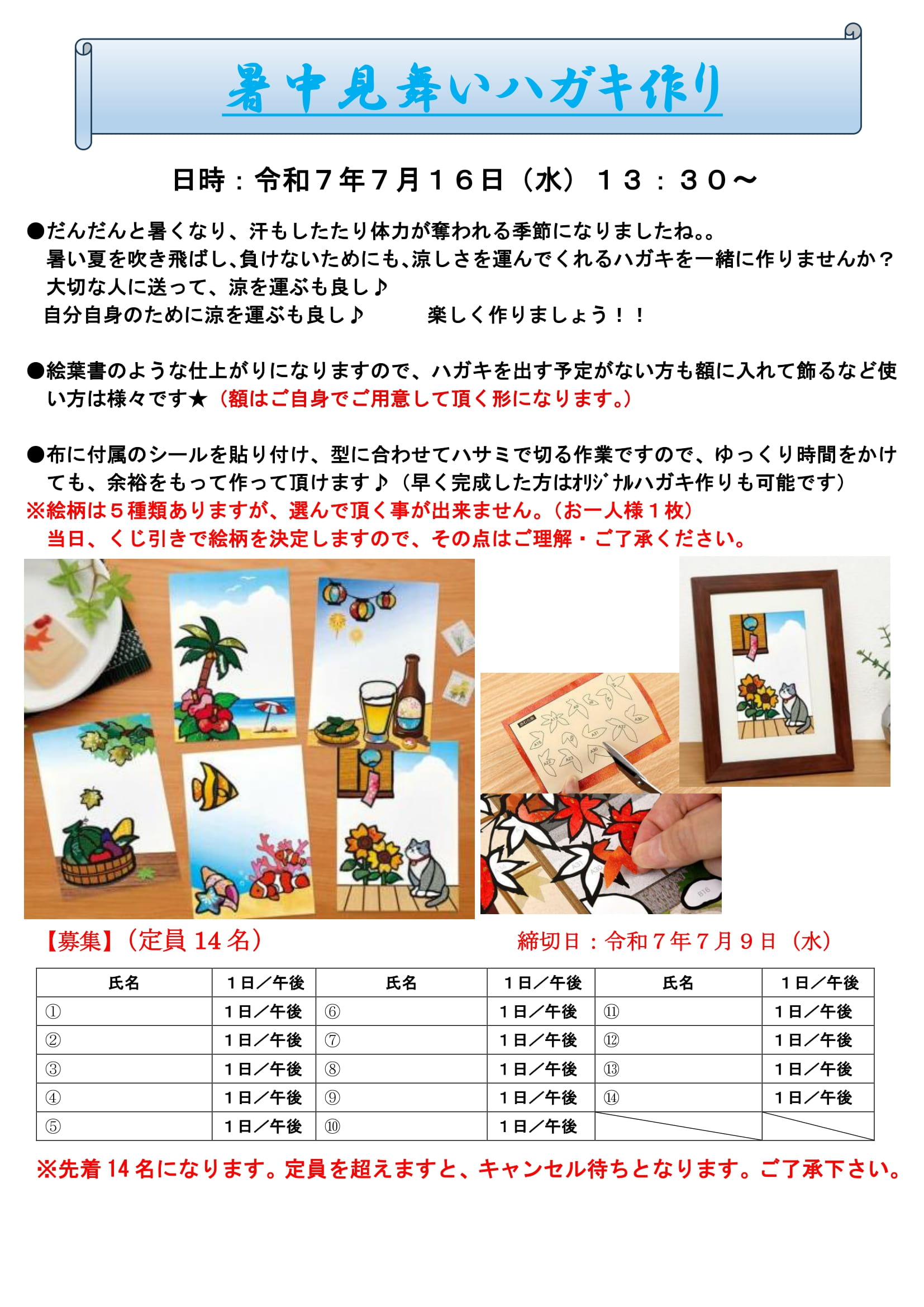 - 7月16日(水)「暑中見舞いハガキ作り」