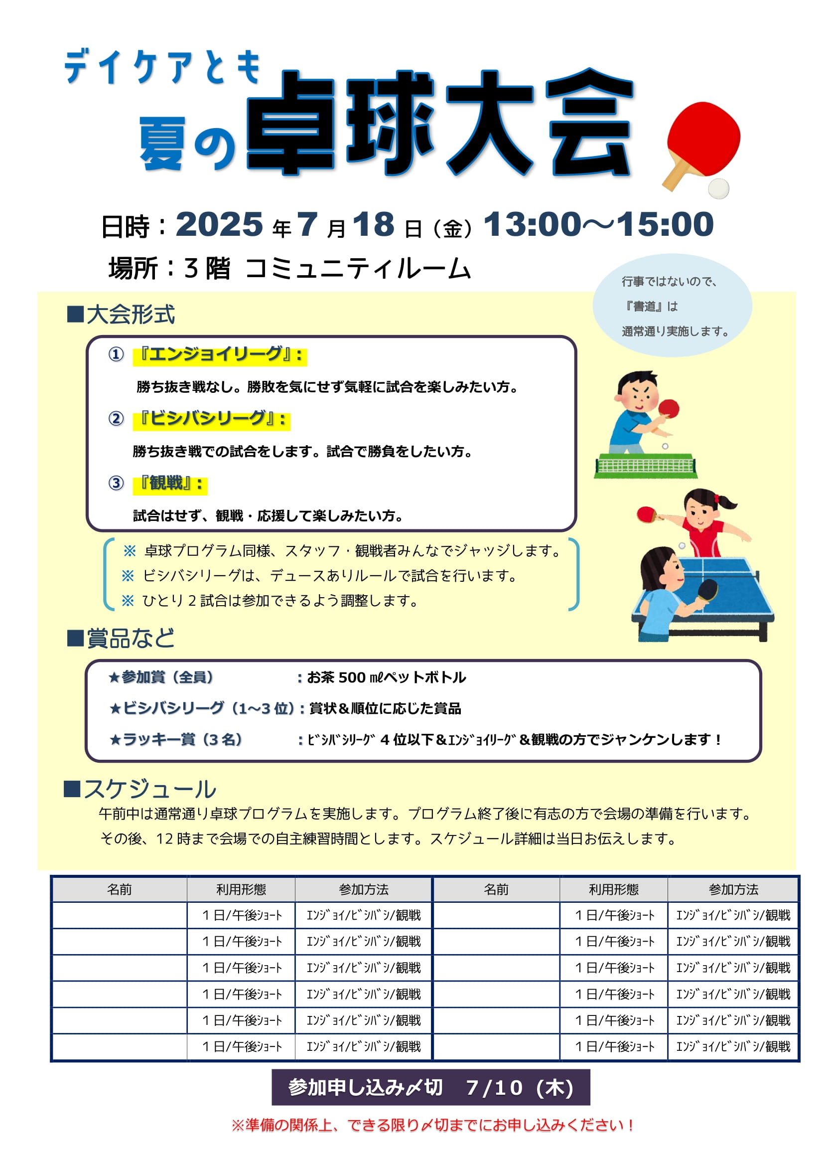 7月18日(金)「夏の卓球大会」