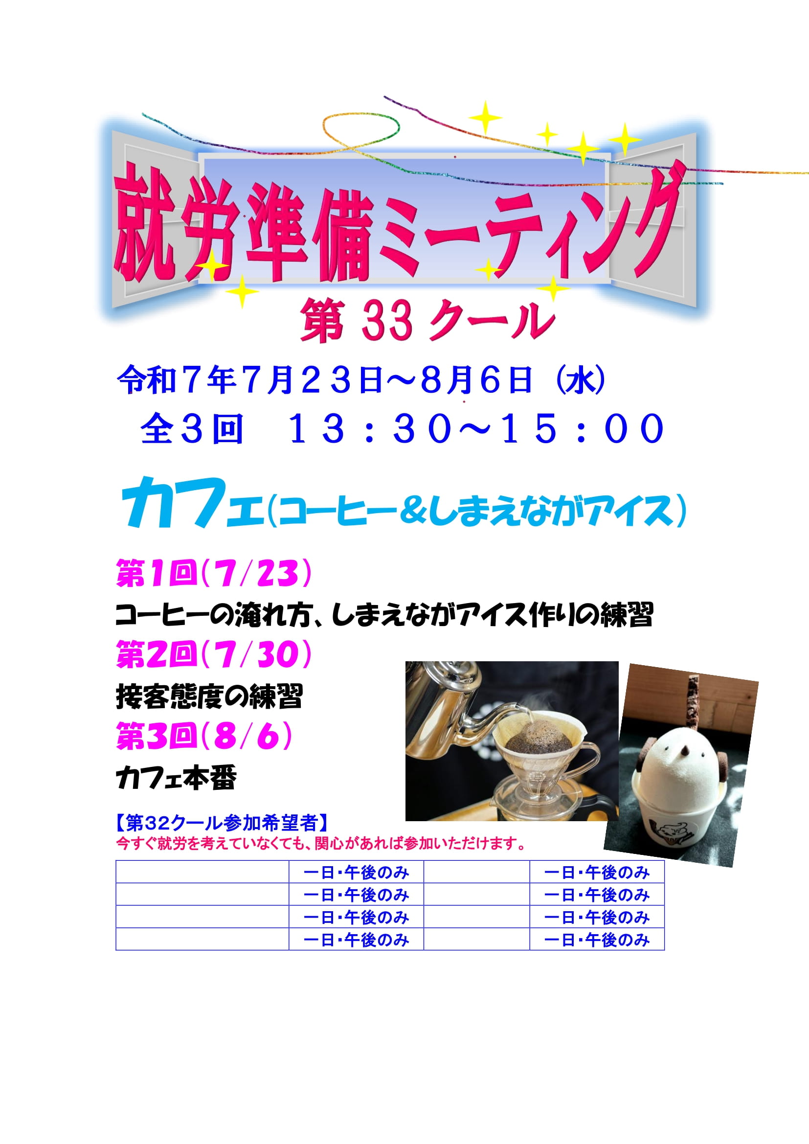 - 7/23~8/6【就労準備ミーティング 第33クール:カフェプロジェクト】