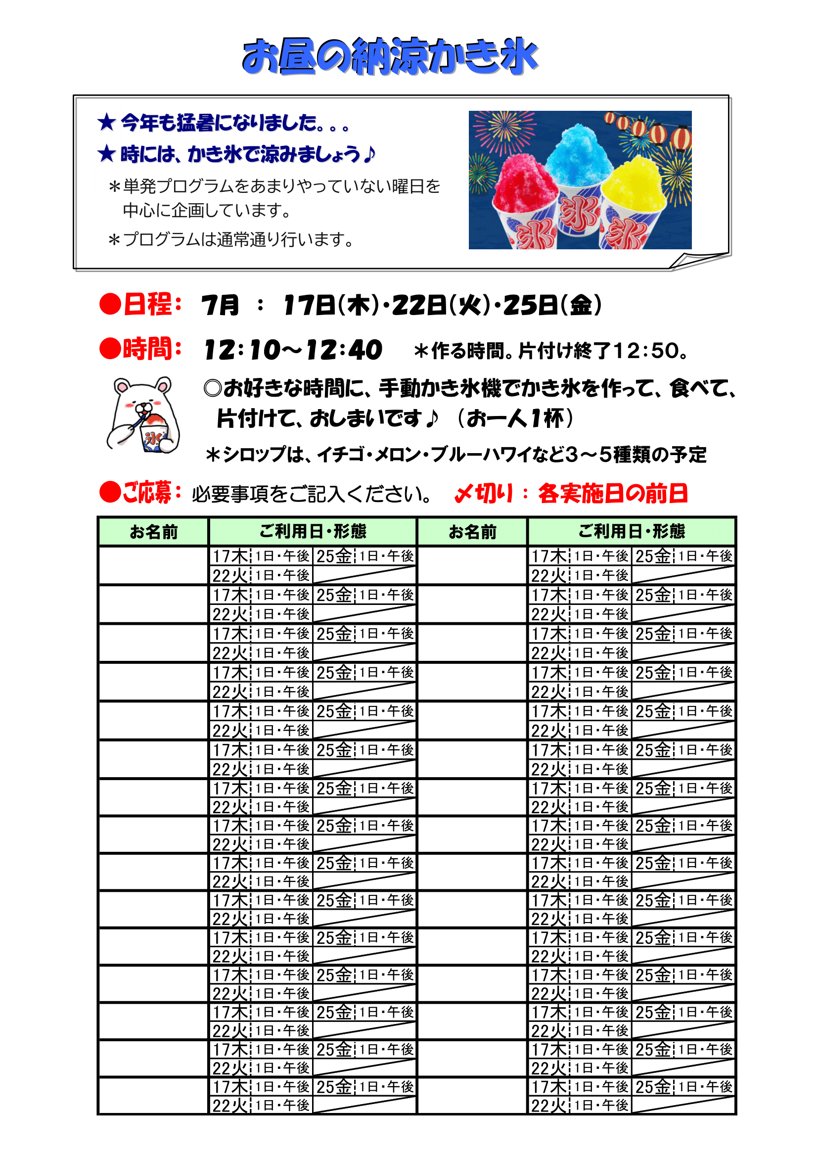 7/17・22・25『お昼の納涼かき氷』
