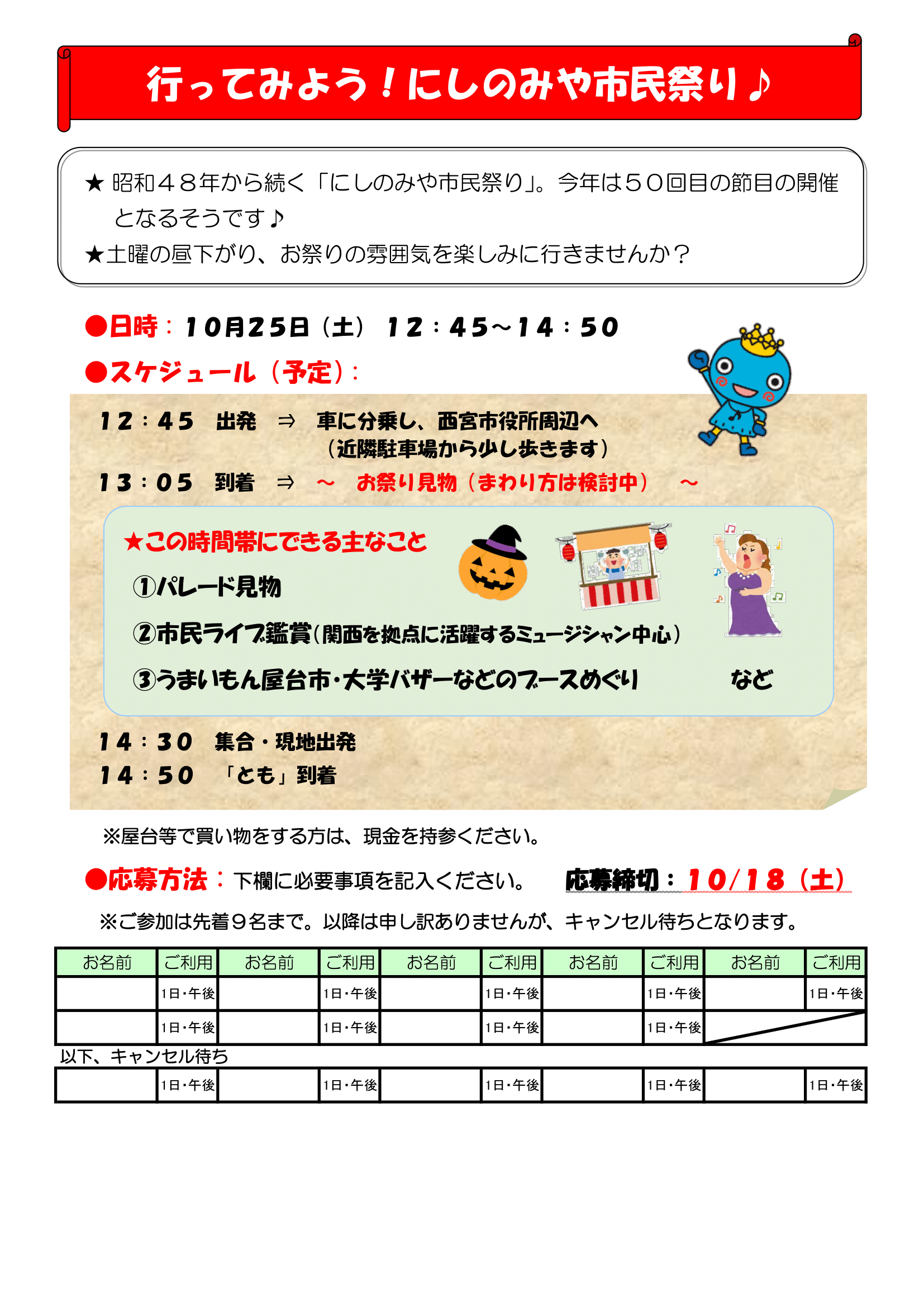 10月25日(土)「行ってみよう!にしのみや市民祭♪」