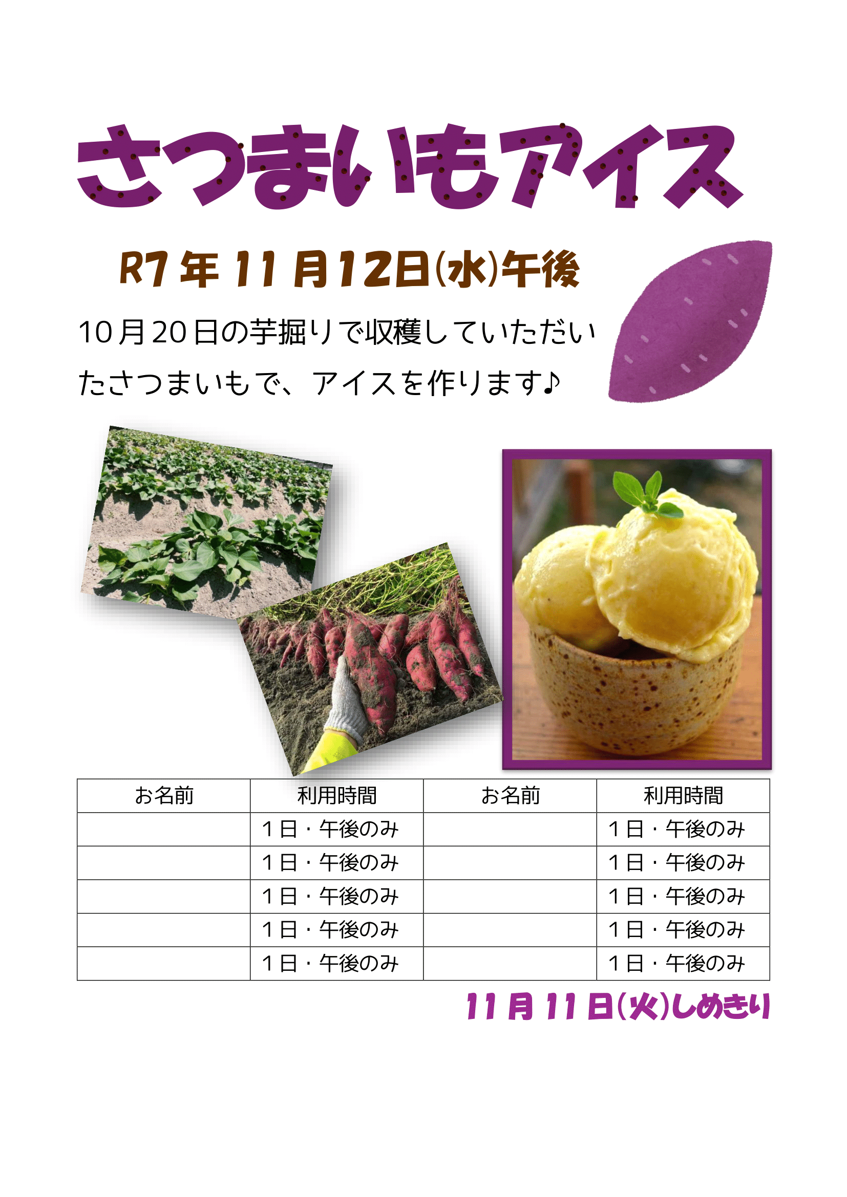 - 11月12日(水)「さつまいもアイス作り」