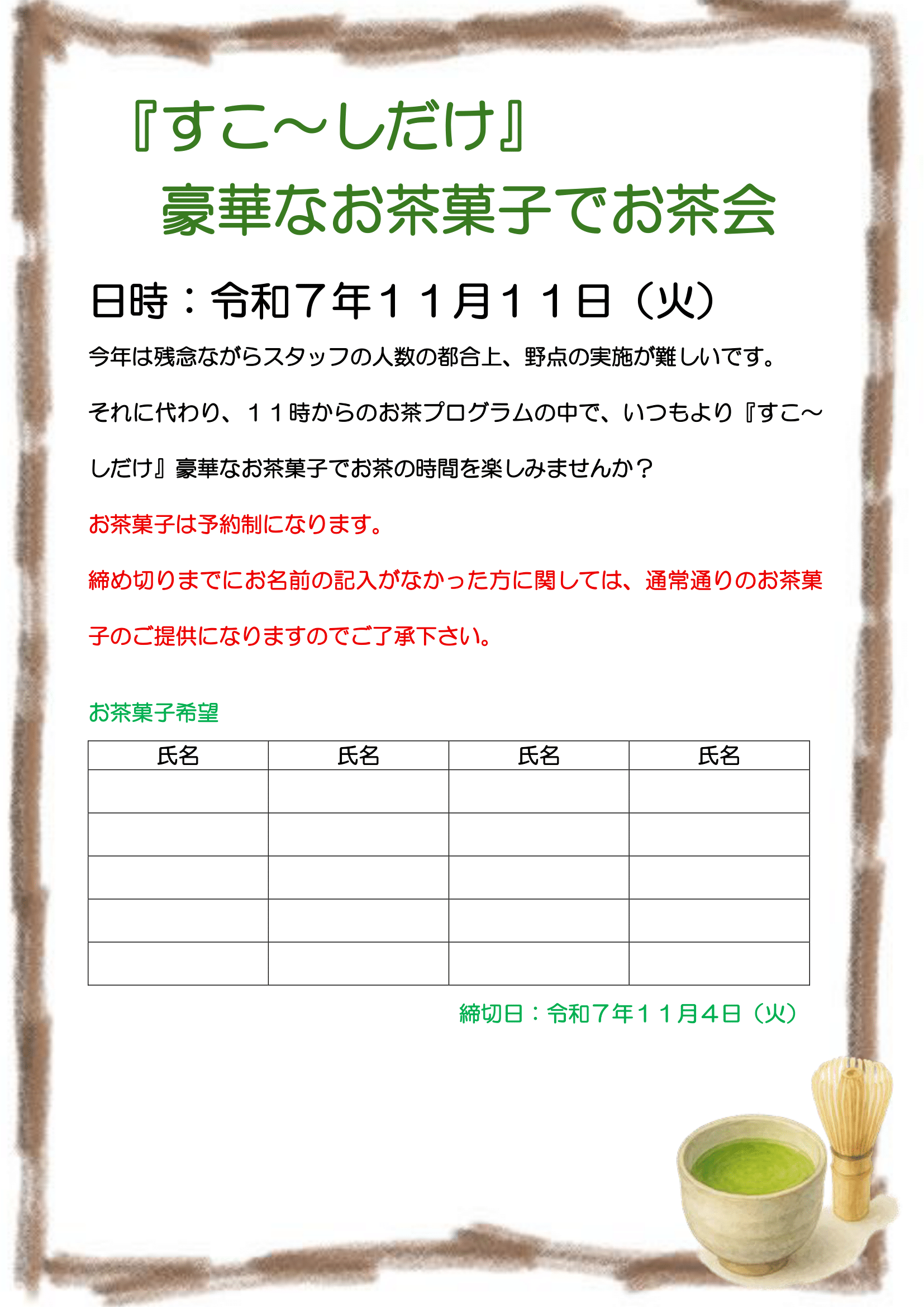 - 11月11日(火)「豪華なお茶菓子でお茶会」