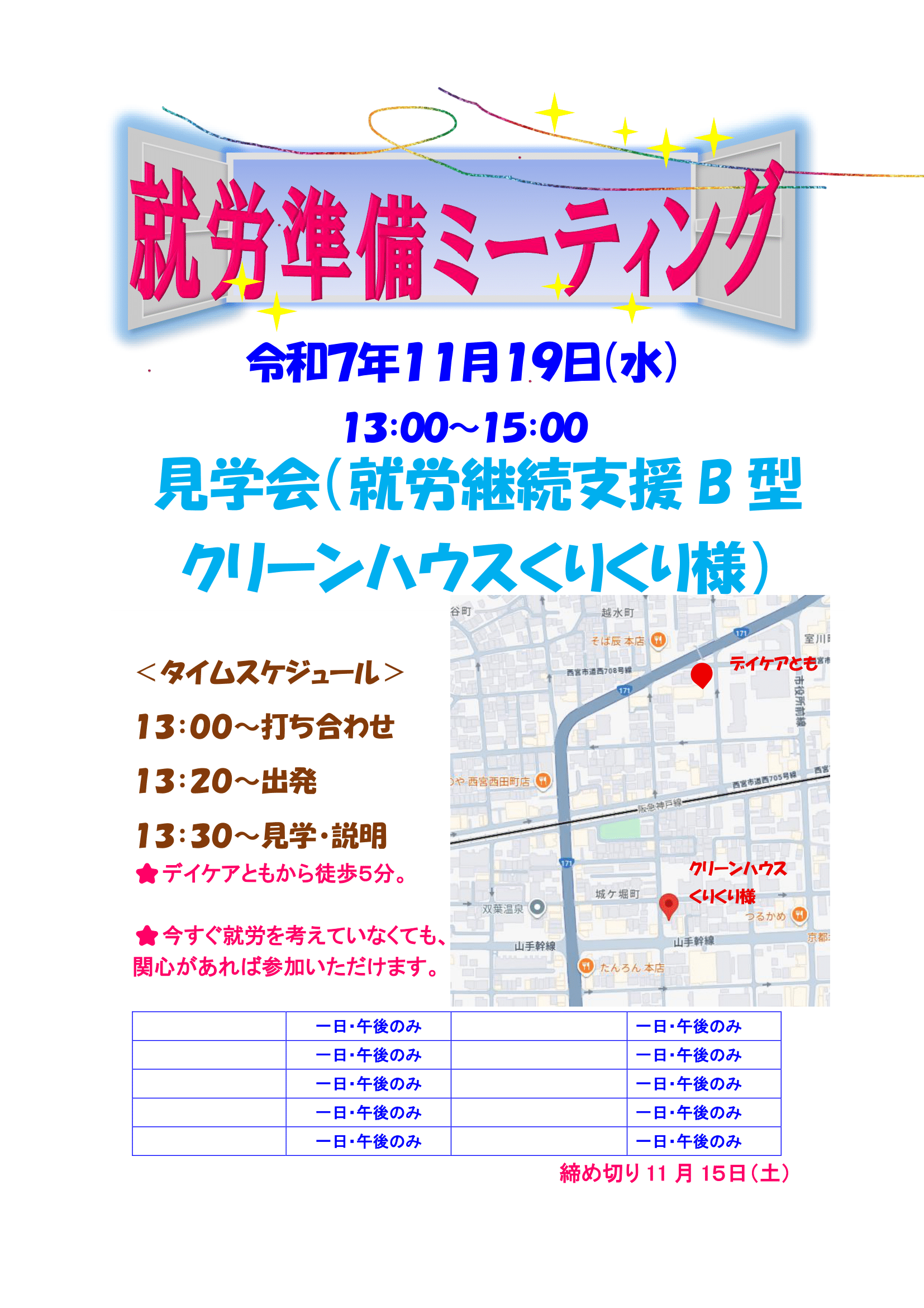 - 『デイケアとも』の利用をご希望の方は、見学・体験および利用登録が必要です。詳しくは、「ご利用について」をご覧ください。