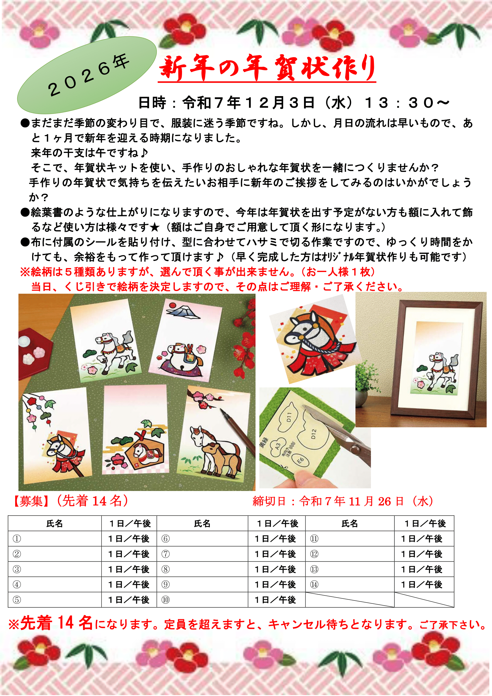 - 12月3日(水)「新年の年賀状作り」