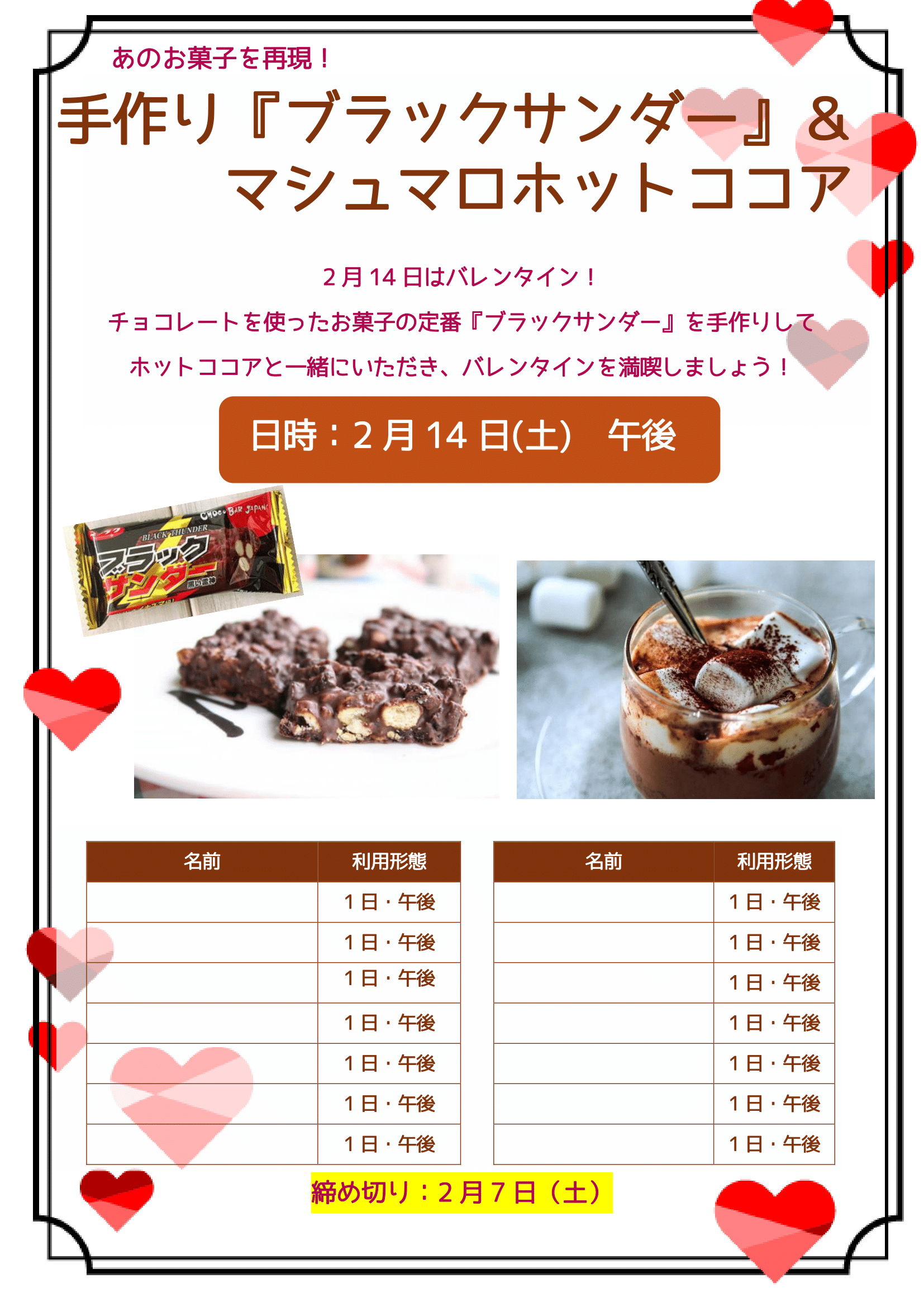2月14日(土)「ブラックサンダー&ココア」作り