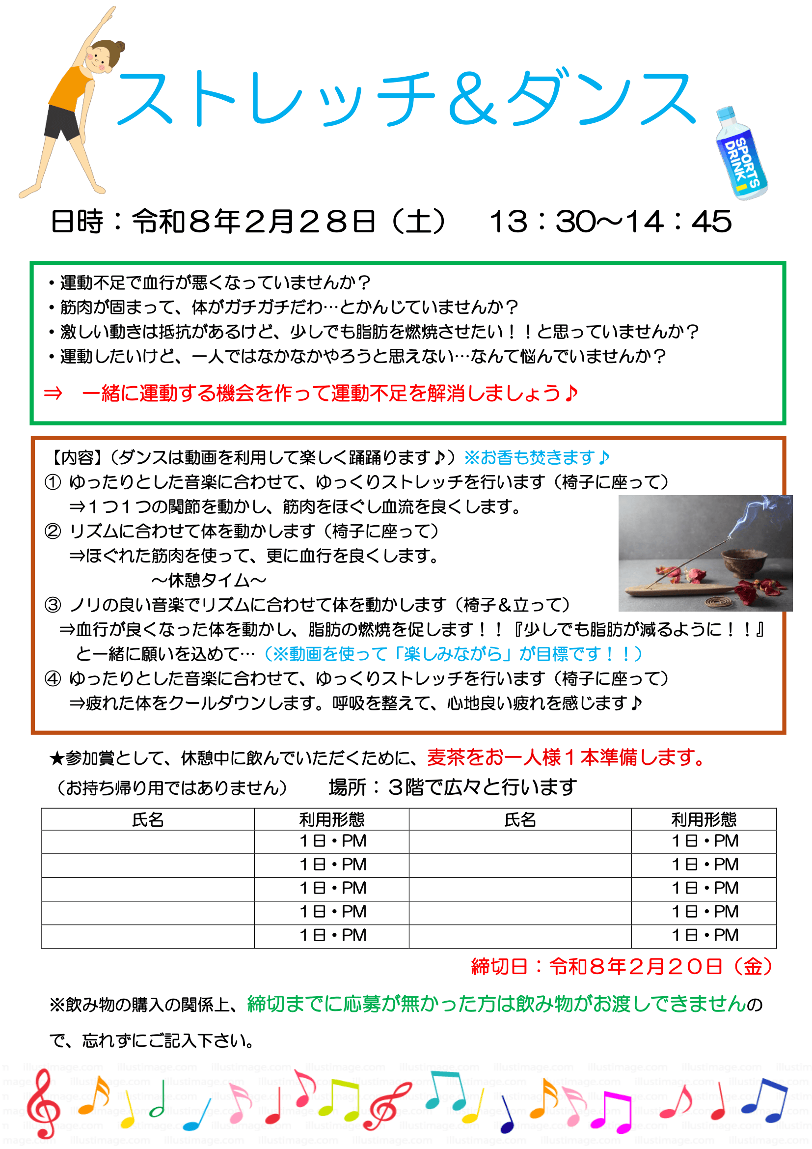 - 2月28日(土)「ストレッチ&ダンス」